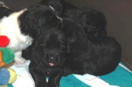 The puppies still spend a large portion of each day sleeping. They continue to interlock, Lincoln log style. Quite frequently the same two will pair up repeatedly, taking turns being the under or the over dog.