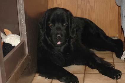 The big stuffed animal the Adlers contribute never loses its appeal. Sometimes, its hard to tell where the stuffie leaves off and the Newfie begins. Can you spot the Landseer pup on the black-and-white bunny? Not so easy, is it.